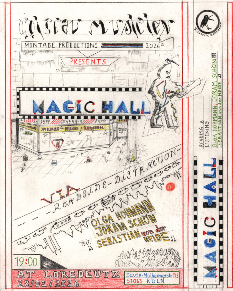 On 28.02.26 L’OISEAU MUSICIEN – MONTAGE invites you to the KunstWerk Köln via Lore Deutz: